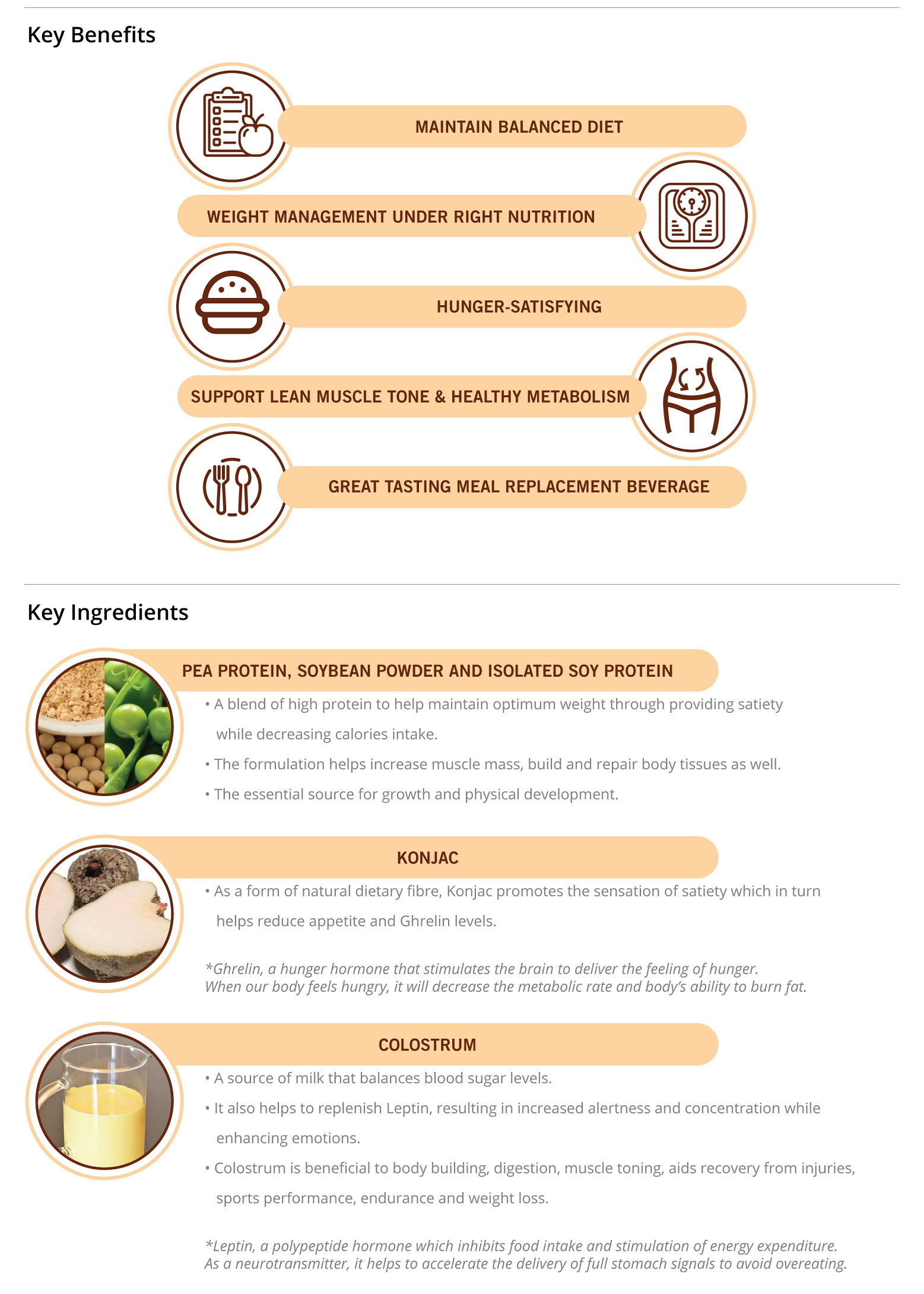 NUREOX Protein ProMix is formulated and designed to help you manage your weight with ease. Combining pea protein, soybean powder, isolated soy protein and other valuable ingredients, it serves as the perfect mixture to increase daily protein consumption and a healthy meal replacement choice. The high protein formulation controls hunger and curbs cravings while providing essential amino acids to keep body strong and healthy. It allows the body to absorb more nutrients from food, boosts immune system and energy levels. NUREOX Protein ProMix also helps muscle and strength building while preventing muscle loss during the dieting process.
